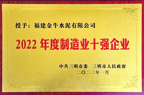 金牛水泥入選福建省”民營制造業百強“榜單